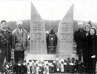 Ce mémorial a été érigé par un comité et est dédié entre autres aux soldats de la localité. Le monument, dévoilé le 11 novembre 1995, rend hommage aux valeureux vétérans de Saint-François-de-Madawaska et de Connors. Le projet du monument est le travail d'un comité de paroissiens de Saint-François et de Connors, dont quelques-uns figurent dans la photo : (de droite à gauche) MM. Mario Bossé, Ernest Sirois (maire de Saint-François), et Rénald Landry, et Mmes Jacqueline Émond et Alida Émond, présidente du comité.