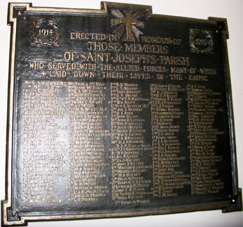 Plaques de la Première Guerre mondiale de la paroisse St. Joseph