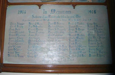 Ce mémorial en forme de peinture fut érigé par la basilique "St. Ptrick's Basilica" et est dédiée aux soldats de la paroisse morts aux combat durant La Grande Guerre. À l`intérieur du cadre de la peinture, en bas, se trouve la liste de ces soldats. La peinture représente des anges venant du ciel et descendant vers le champs de bataille pour rencontrer un soldat mourant étendue sur le sol, et Jésus Christ sur la croix.
