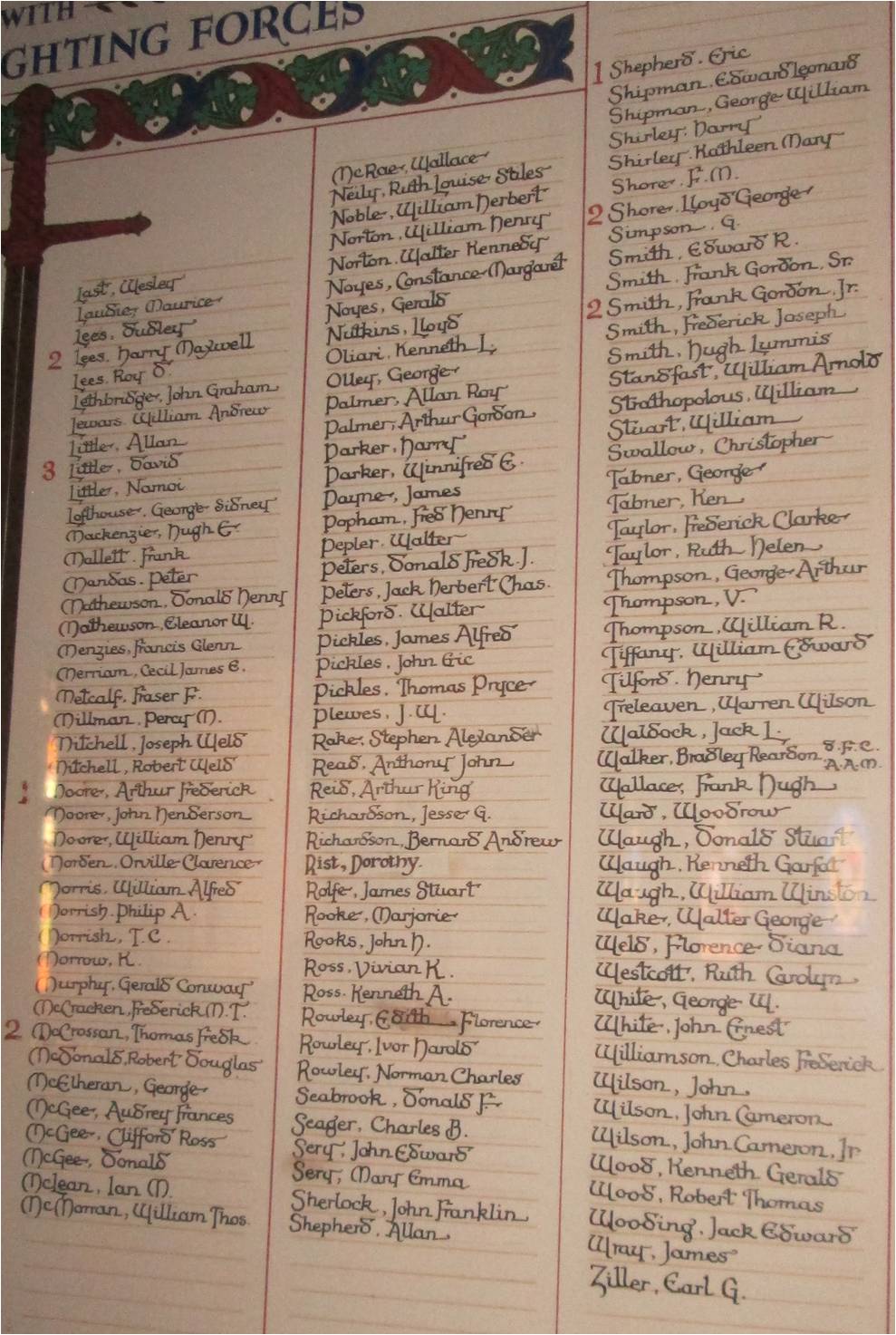 Ce parchemin installé à la cathédrale St. Paul rend hommage aux membres de la congrégation qui ont servi pendant la Seconde Guerre mondiale.