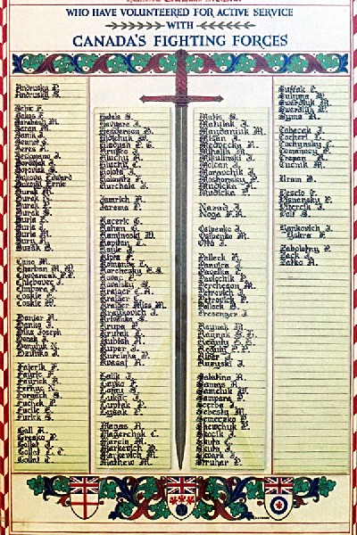 Ce parchemin contient le nom des membres de la filiale slovaque 129 de la Légion royale canadienne qui se sont enrôlés volontairement durant la Deuxième Guerre mondiale. Il a été posé par les anciens combattants slovaques et l’Église catholique romaine St. Peter, qui est l’église patronale de la Légion et des anciens combattants slovaques.