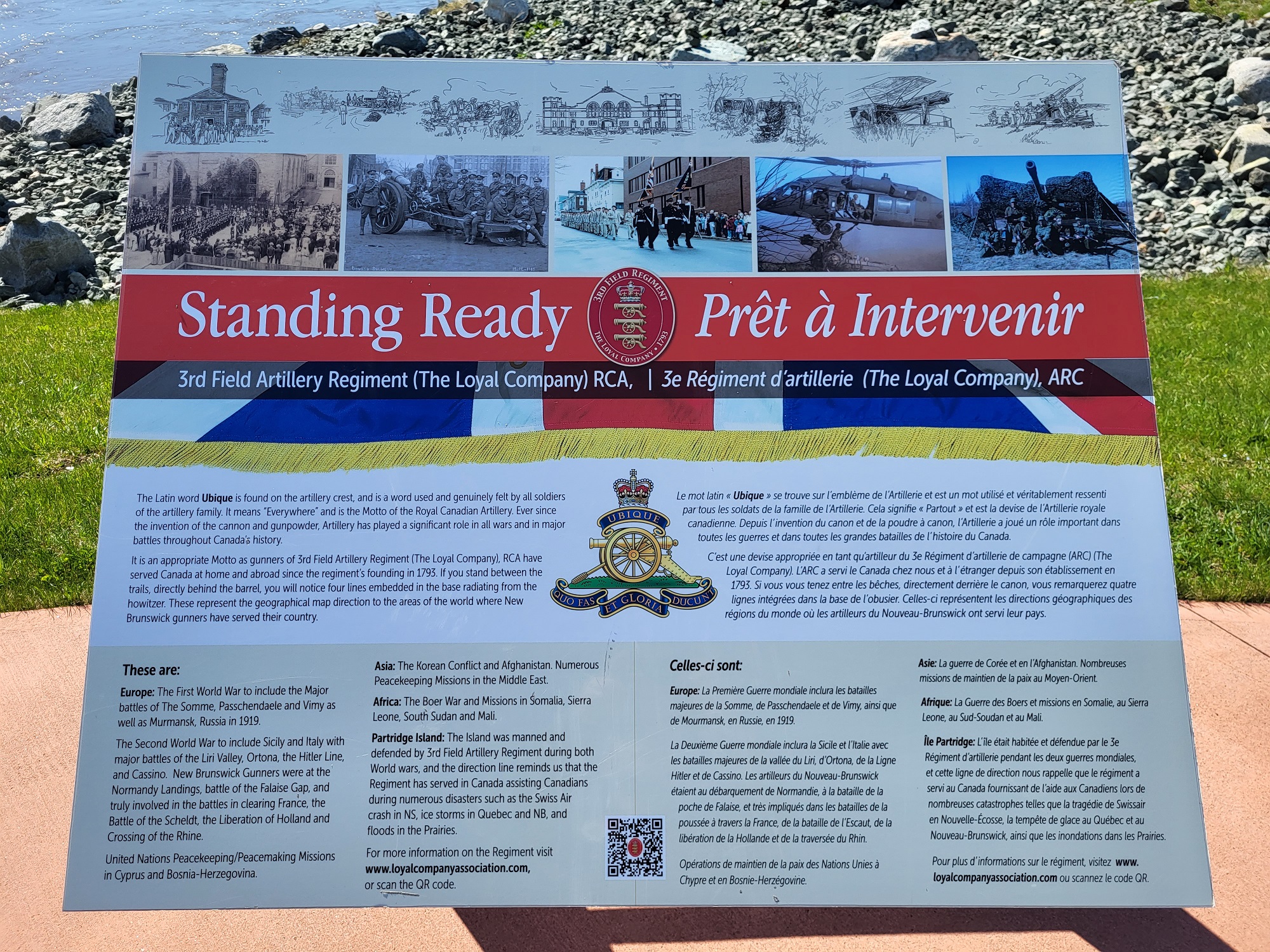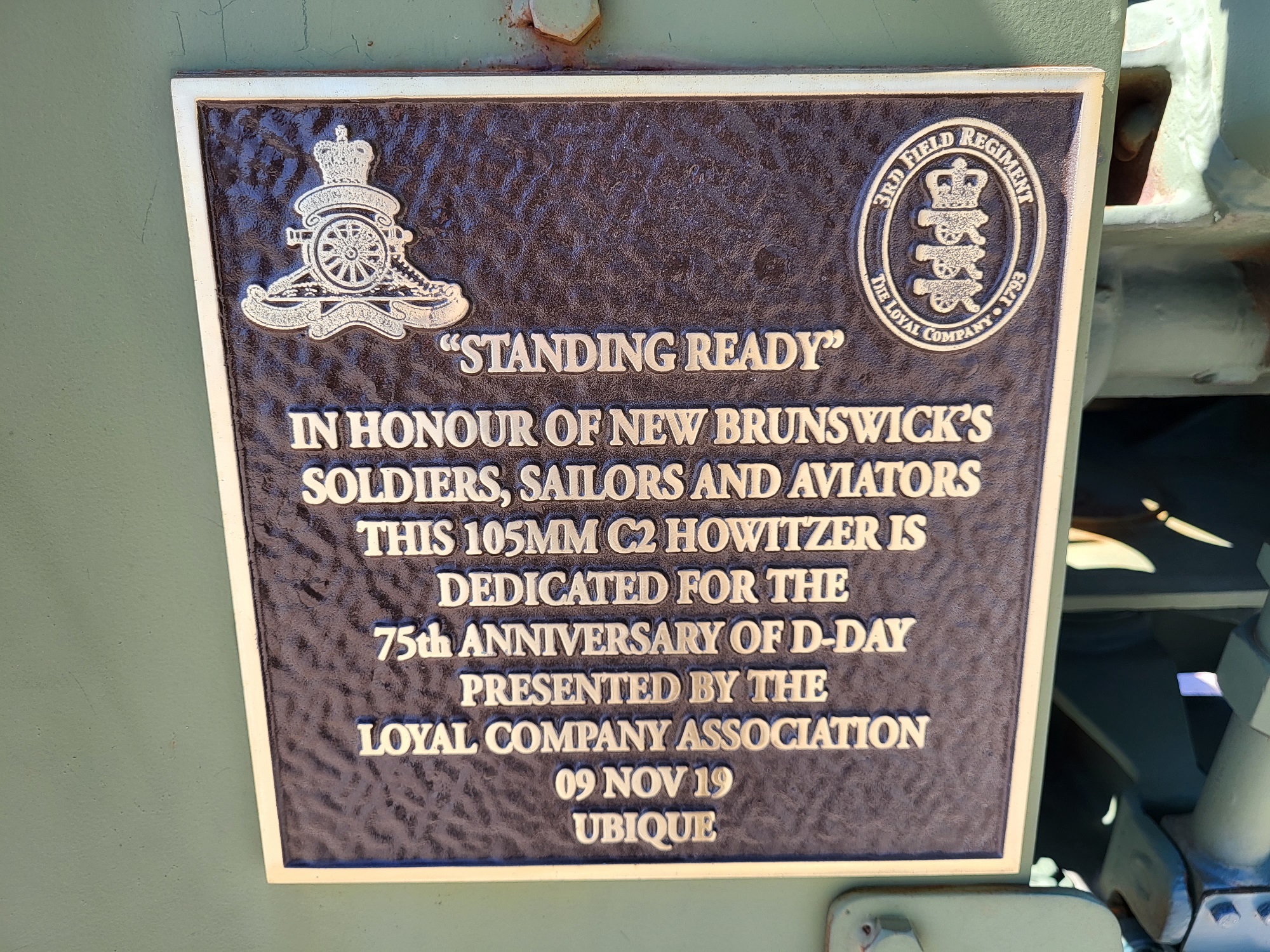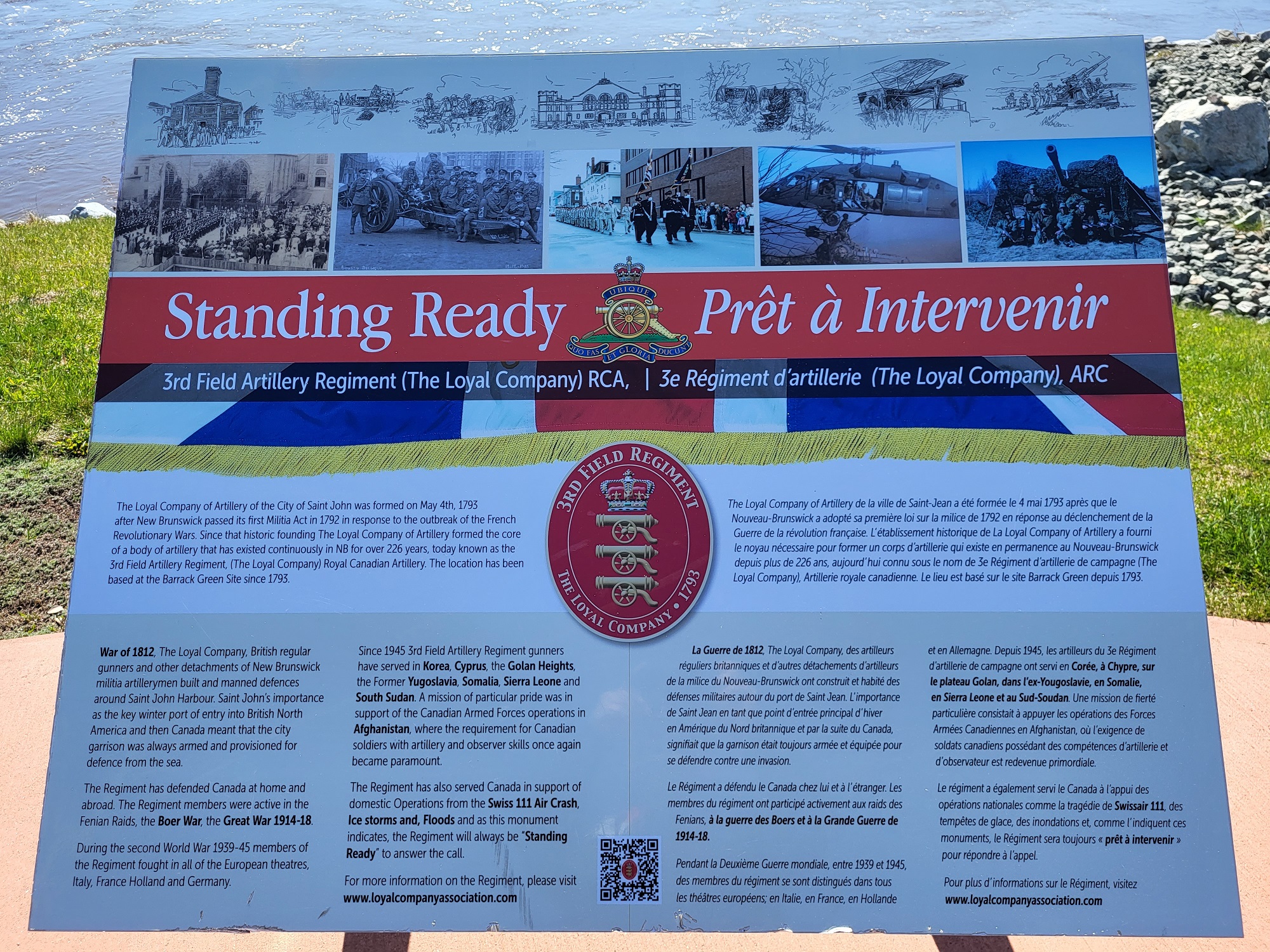 Le monument « Standing Ready » à la mémoire des soldats, marins et aviateurs du Nouveau-Brunswick a été inauguré le 11 novembre 2019. Le canon de 105 mm peut être orienté en direction des lieux des guerres, conflits et déploiements auxquels la Loyal Company a participé depuis sa création en 1793.
