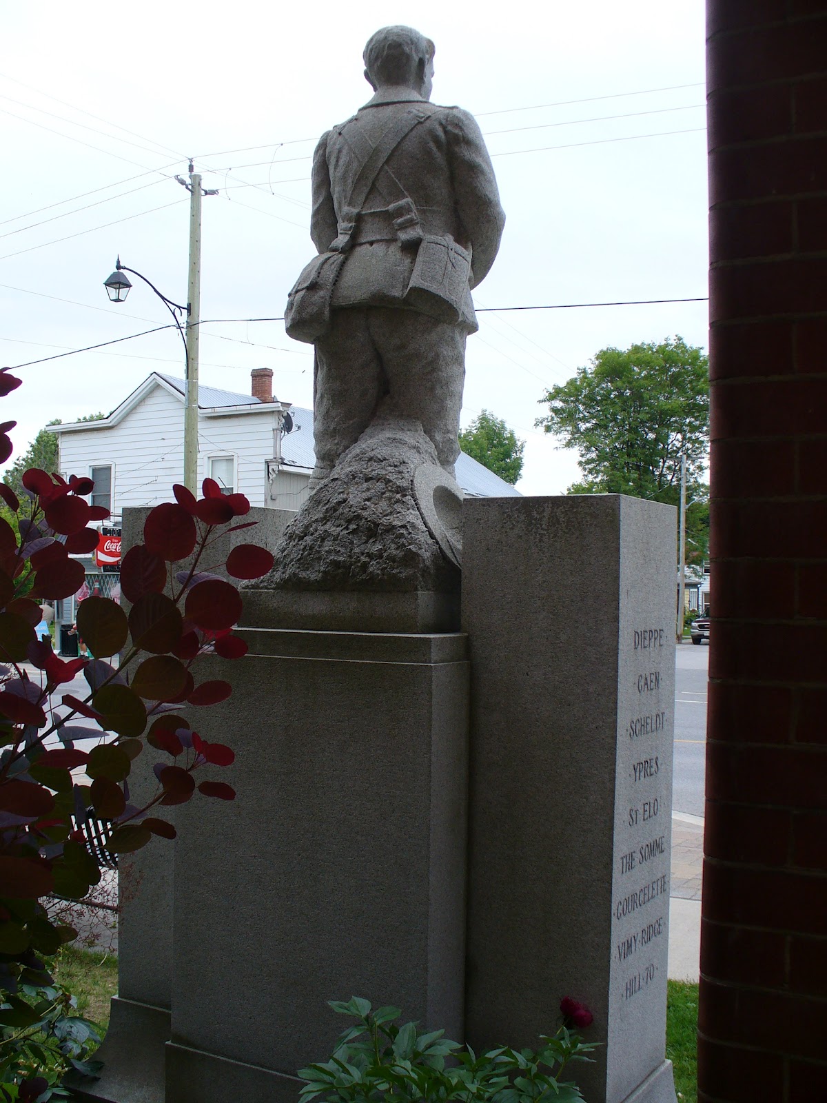 Following the end of the Great War (World War One) Sunderland sought to erect a memorial to those local citizens who had died in the conflict. Ontario war memorials based on the same template as Sunderland's were constructed in Kemptville, Cape Crocker and Wiarton. The memorial features a lone young soldier standing tall, grasping his rifle vertically in front of him. Since that time, the soldier's memorial has come to symbolize all from Sunderland killed in war service.