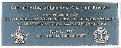 Ce mémorial est dédié aux navires de la Marine royale du Canada et de la Marine marchande canadienne, ainsi qu’à leurs équipages passés et à venir. Il a été érigé par la Ville de Thunder et la NOAC, l’ARCM, la LSR (Motor) Old Boys’ Association, l’unité 257 de l’ANAF à Thunder Bay et la fondation Senator Norman M. Paterson.