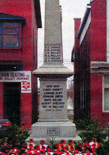 Érigé par le Sussex Women’s Institute et le 8th Canadian Hussars (Princess Louise’s) Regiment, ce mémorial est dédié aux anciens combattants et à leurs morts des Première et Seconde Guerres mondiales et de la guerre de Corée.