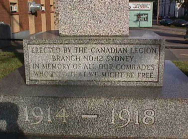 Ce mémorial est dédié aux morts de la guerre des Boers, des Première et Seconde Guerres mondiales et de la guerre de Corée. Il a été érigé par la filiale no 12 de la Légion royale canadienne à Sydney.