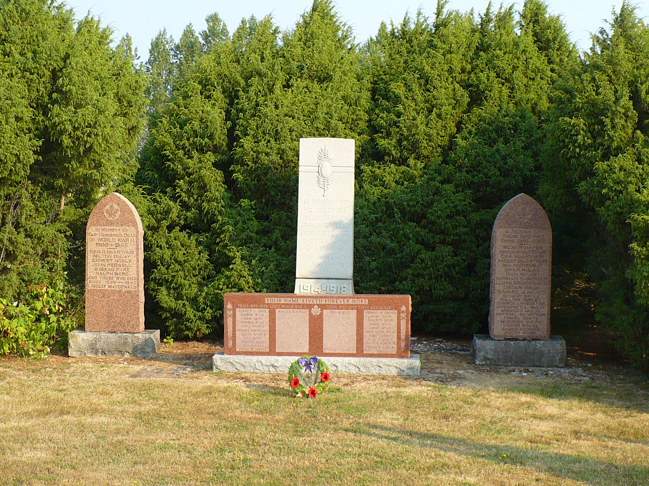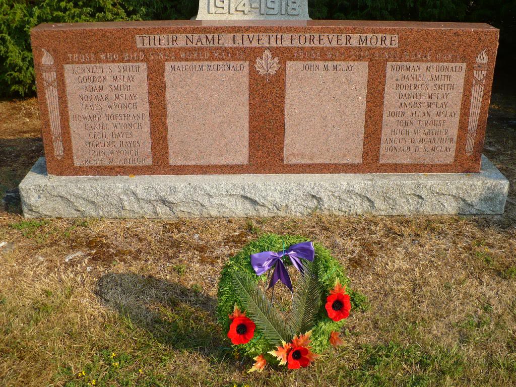 Ce monument a été érigé sur un site connu sous le nom de Monument Corners. Ce nom a été adopté lors de l'inauguration du cénotaphe, en 1920, par le comté de Lindsay (maintenant la municipalité de la Péninsule de Bruce). Le site a été offert au comté par la famille McLay vers 1920. Le premier monument, au centre, énumère les noms des résidants qui sont morts au combat durant la Première Guerre mondiale.