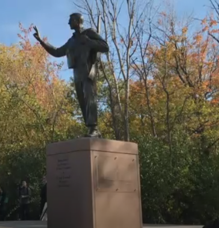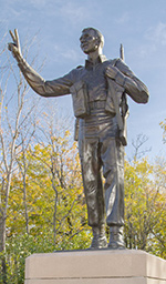 Sculpture de bronze, intitulée Le Retour, réalisée par le colonel à la retraite des Forces armées canadiennes André Gauthier, OMM, CD. Elle illustre un vétéran de la Seconde Guerre mondiale de retour de la guerre. Bras tendu, il fait le signe de la paix et de la victoire. Il est revenu chez lui et nous rappelle que pour bon nombre des soldats de retour au pays, il n’y a pas de victoire. Ils n’ont pas trouvé la paix. Ils sont piégés dans le conflit dans lequel ils ont combattu. En réalité, ils sont restés là-bas. Ne les abandonnons pas. En collaboration avec les Services de bien-être et moral des Forces canadiennes, ainsi qu’avec la Compagnie Canada pour la campagne des bannières RESPECT, l’équipe de la campagne RESPECT a commandé un monument du Respect, qui a été inauguré le 21 octobre 2017. À cette occasion, des centaines de personnes, dont des personnalités politiques, des résidents et des membres des Forces armées canadiennes, se sont réunies autour du Monument RESPECT Trans Canada.