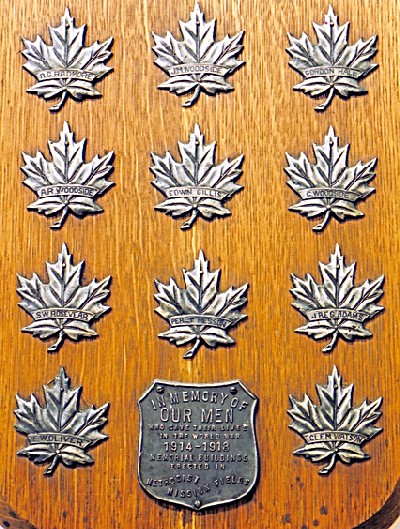 L’Église méthodiste Trinity a dédié cette plaque aux membres de la paroisse qui sont morts lors de la Première Guerre mondiale.