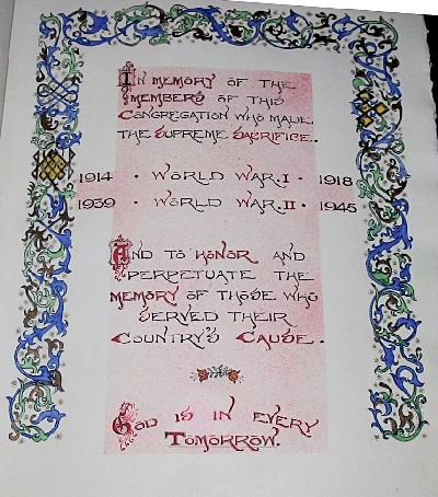 L’Église unie Trinity a dédié ce livre à la mémoire des membres de l’église qui ont servi et sont morts lors des deux guerres mondiales.