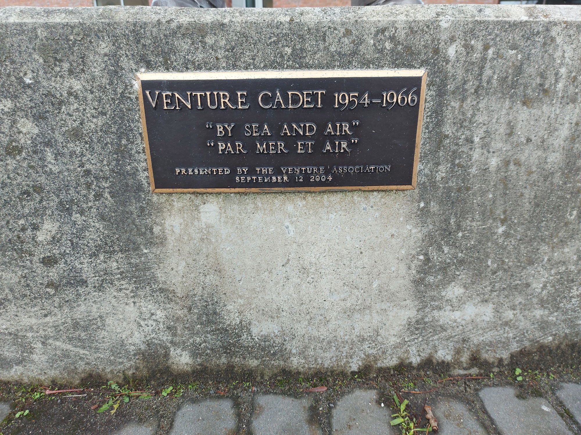 Sur la place centrale du bloc d’hébergement du Navire canadien de Sa Majesté Venture se trouve une statue en bronze d’un cadet du Venture datant de 1954, qui a été commandée et offerte par la Venture Association le 12 septembre 2004.