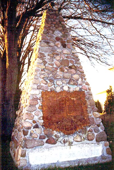 Victoire de Saint-Denis – mémorial érigé le 12 août 1934 par la Société des artisans canadiens-français. La plaque du haut a été enlevée.