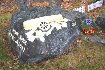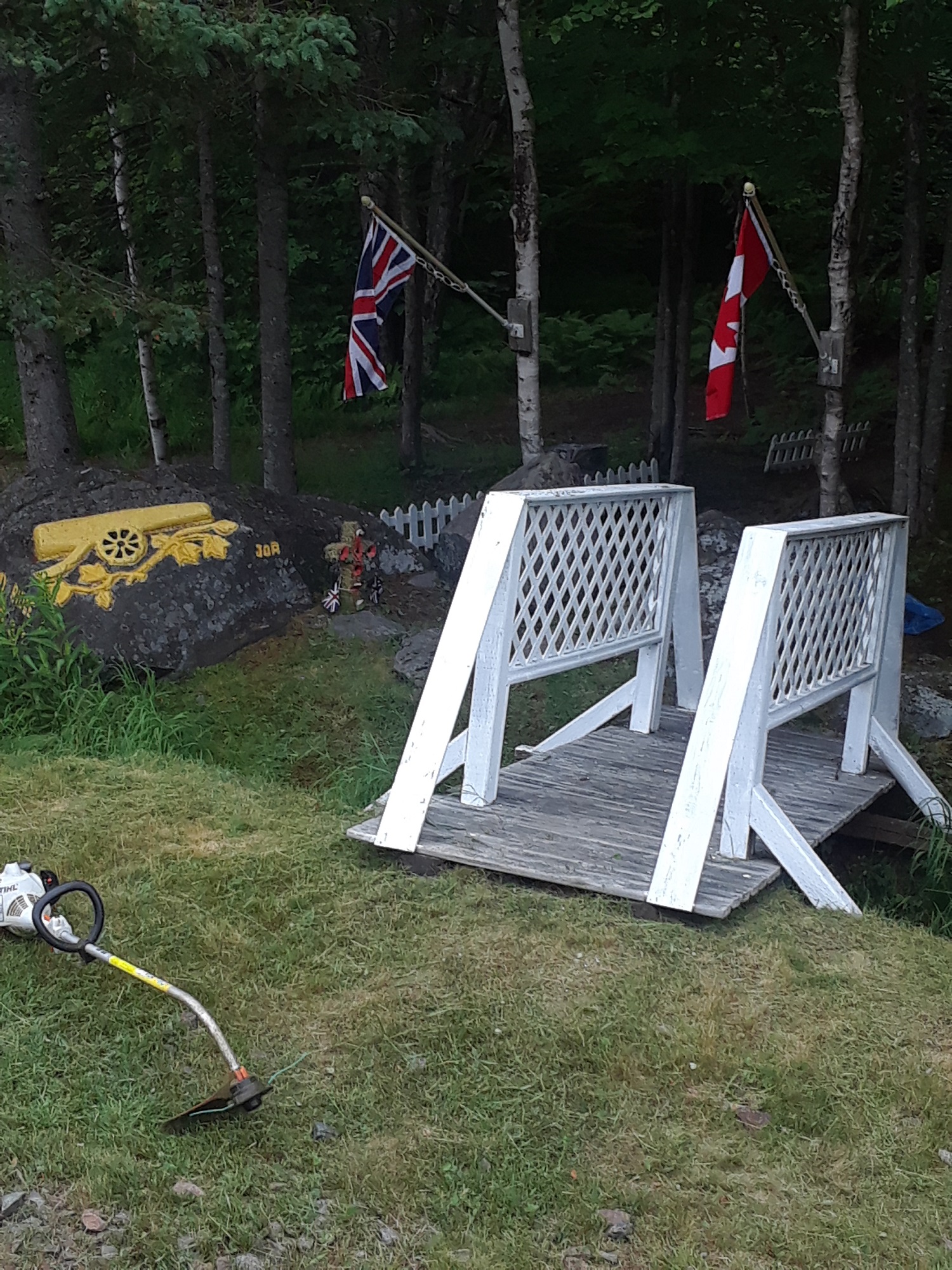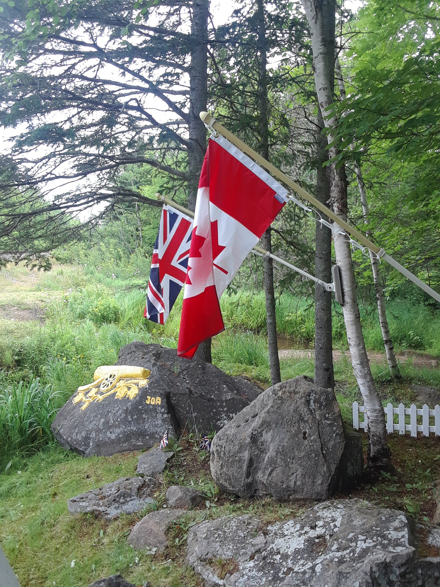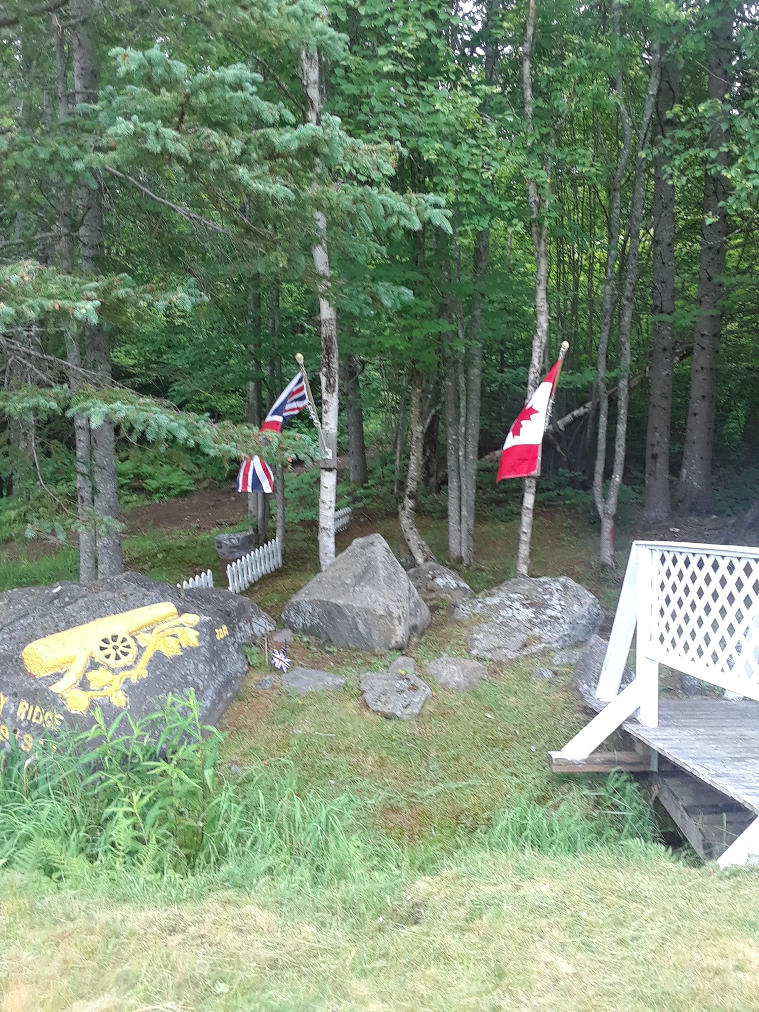 Itinéraire : à partir de Sackville, au Nouveau-Brunswick, empruntez la route 106 Ouest en direction de Dorchester. Garez-vous au monument de l’ancien portage indien et faites quelques pas en arrière vers Sackville sur le chemin de terre (chemin Old Frosty Hollow) jusqu’à la voie ferrée. Soyez extrêmement prudent lorsque vous traversez la voie ferrée, puis tournez à droite sur le sentier pour quadricycles qui longe la voie ferrée. Suivez le sentier vers l’ouest jusqu’à ce qu’il tourne dans les bois, et vous arriverez au monument commémoratif. Il s’agit d’un trajet d’une vingtaine de minutes à pied.