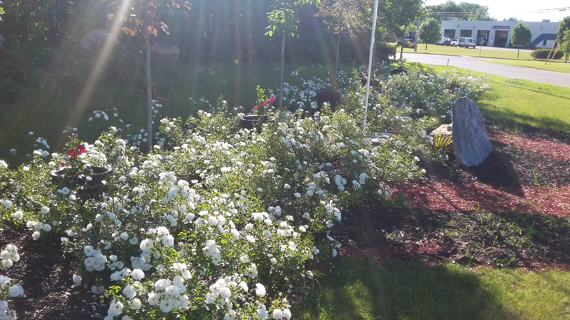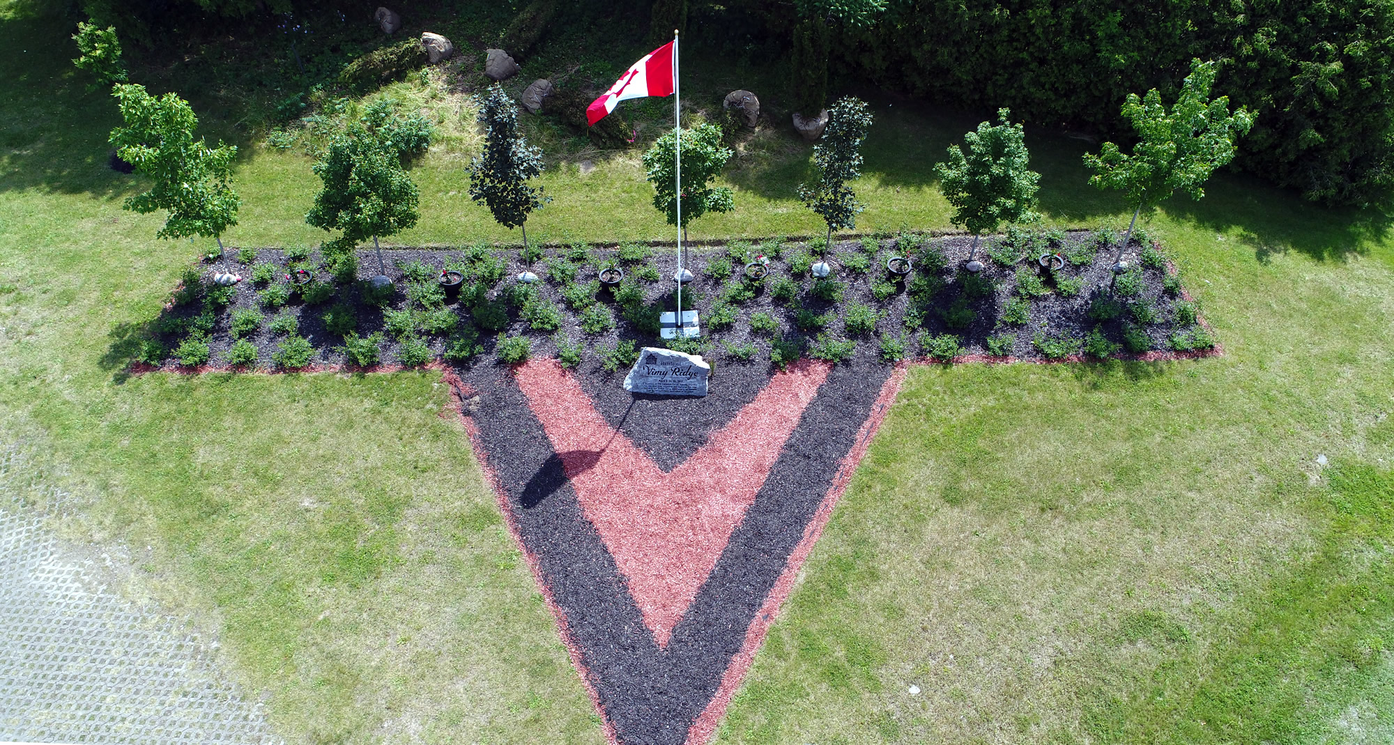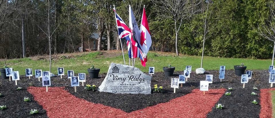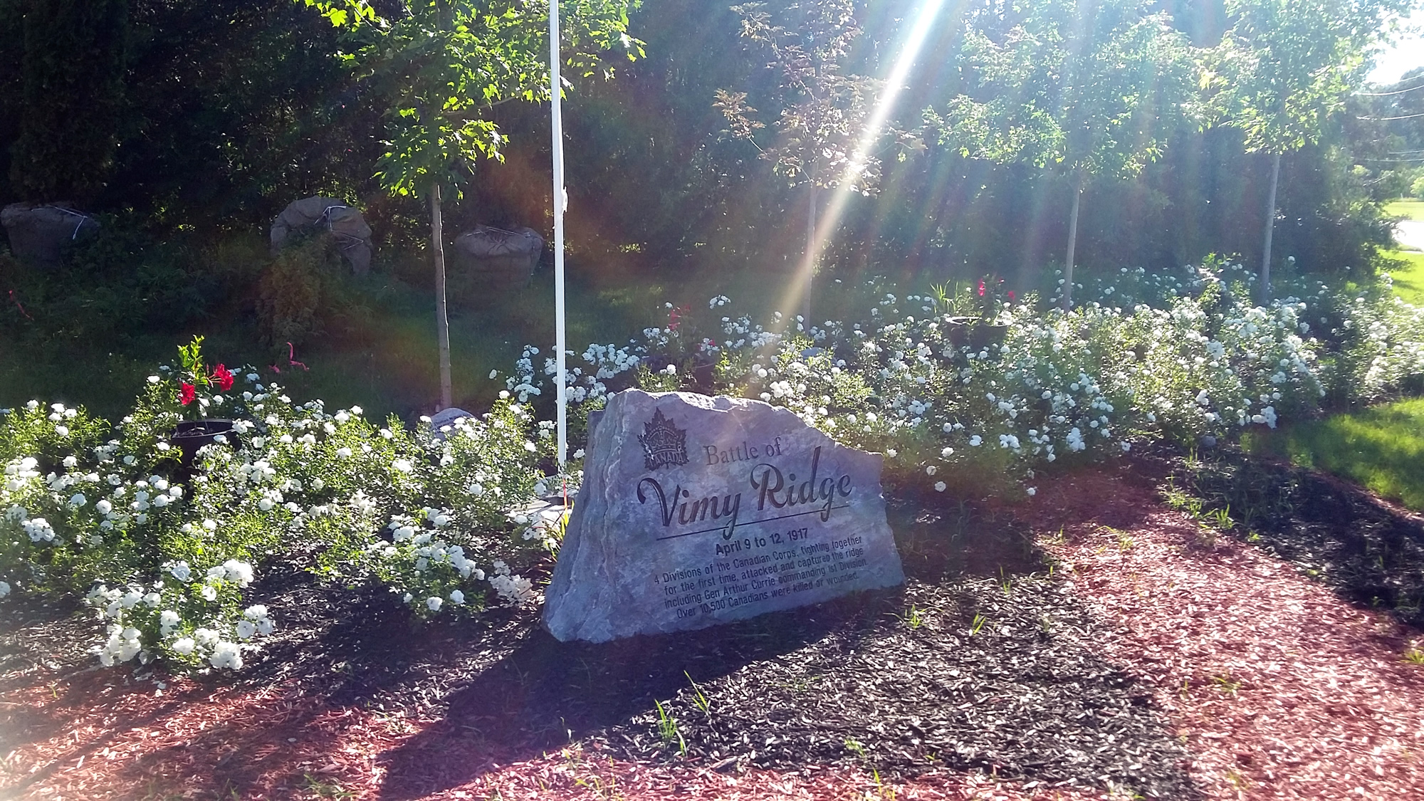 Vimy Ridge Memorial Garden rose bushes and maple trees.
