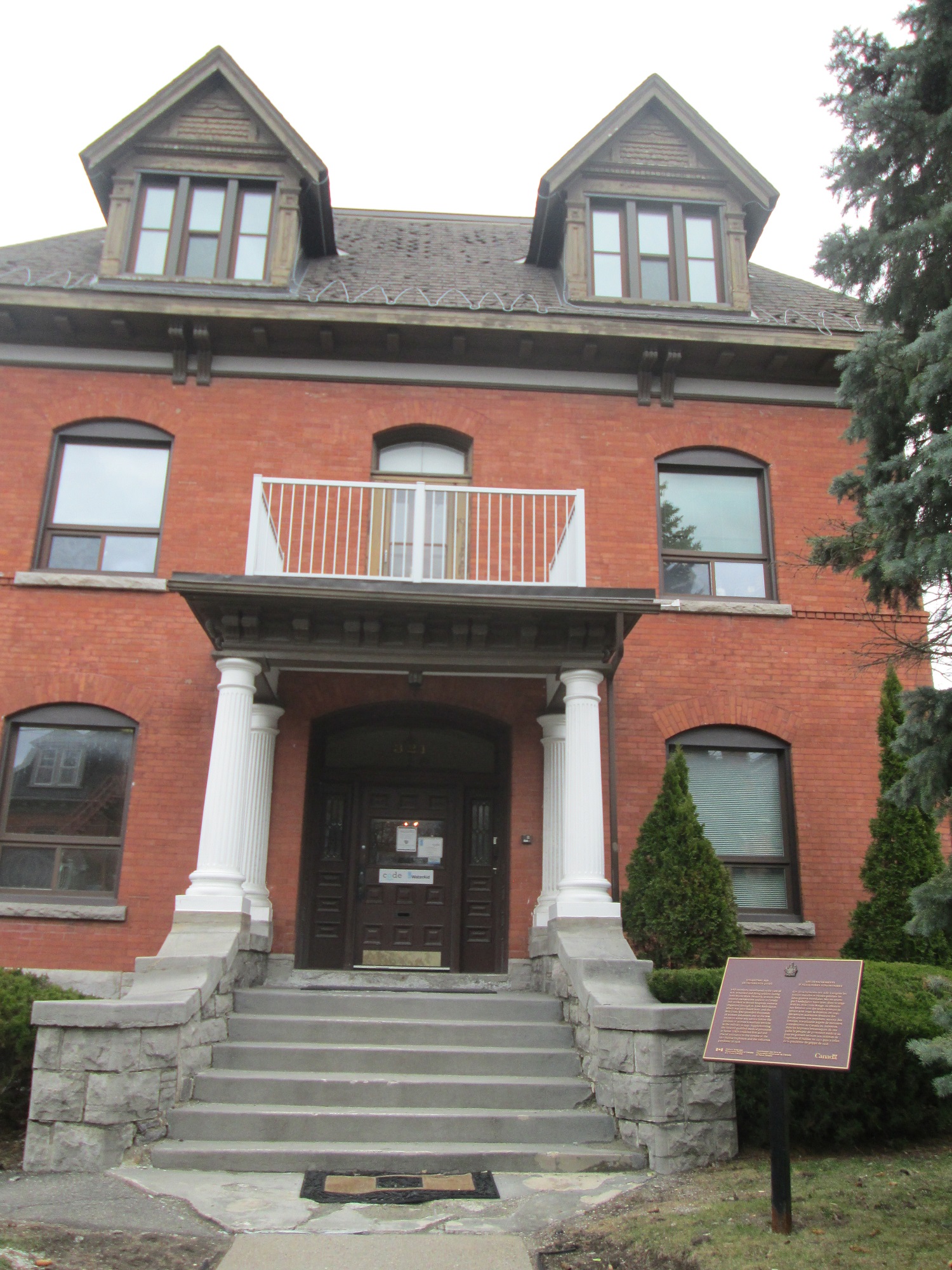 La plaque a par la suite été installée à son emplacement actuel, devant le bâtiment qui abritait auparavant les bureaux d’Ambulance Saint-Jean.