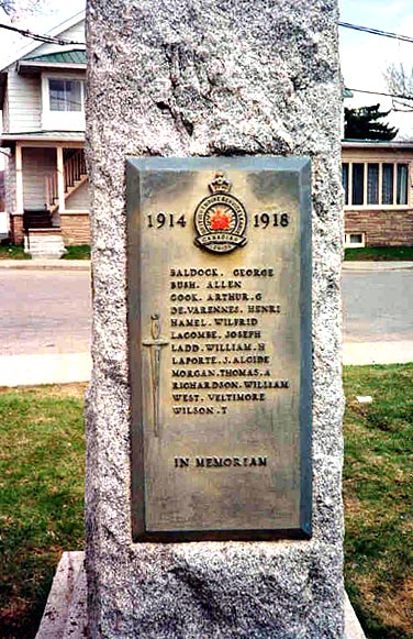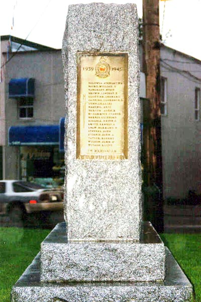 Ce mémorial, inauguré en novembre 1949 par la filiale no 77 de la Légion royale canadienne, est dédié aux citoyens de la communauté décédés durant les Première et Seconde Guerres mondiales.