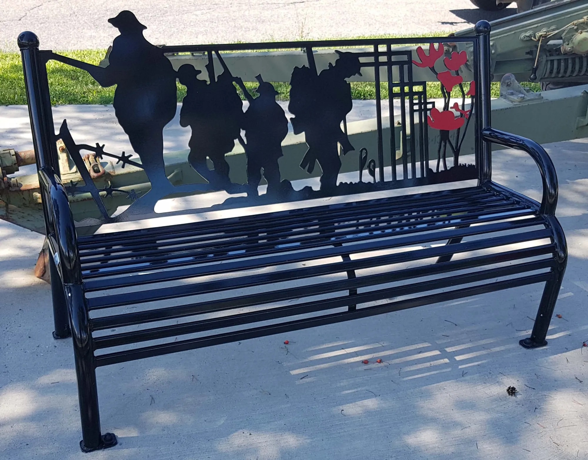La plaque originale mentionnait 20 noms de la Première Guerre mondiale, avec des prénoms au lieu d’initiales. Deux noms de la Première Guerre mondiale figurant sur la plaque originale ne figurent pas sur la plaque actuelle. La plaque actuelle comporte 35 noms de la Première Guerre mondiale. Les pavés de la place épellent « nous nous souvenons » et « let us remember » en code Morse.