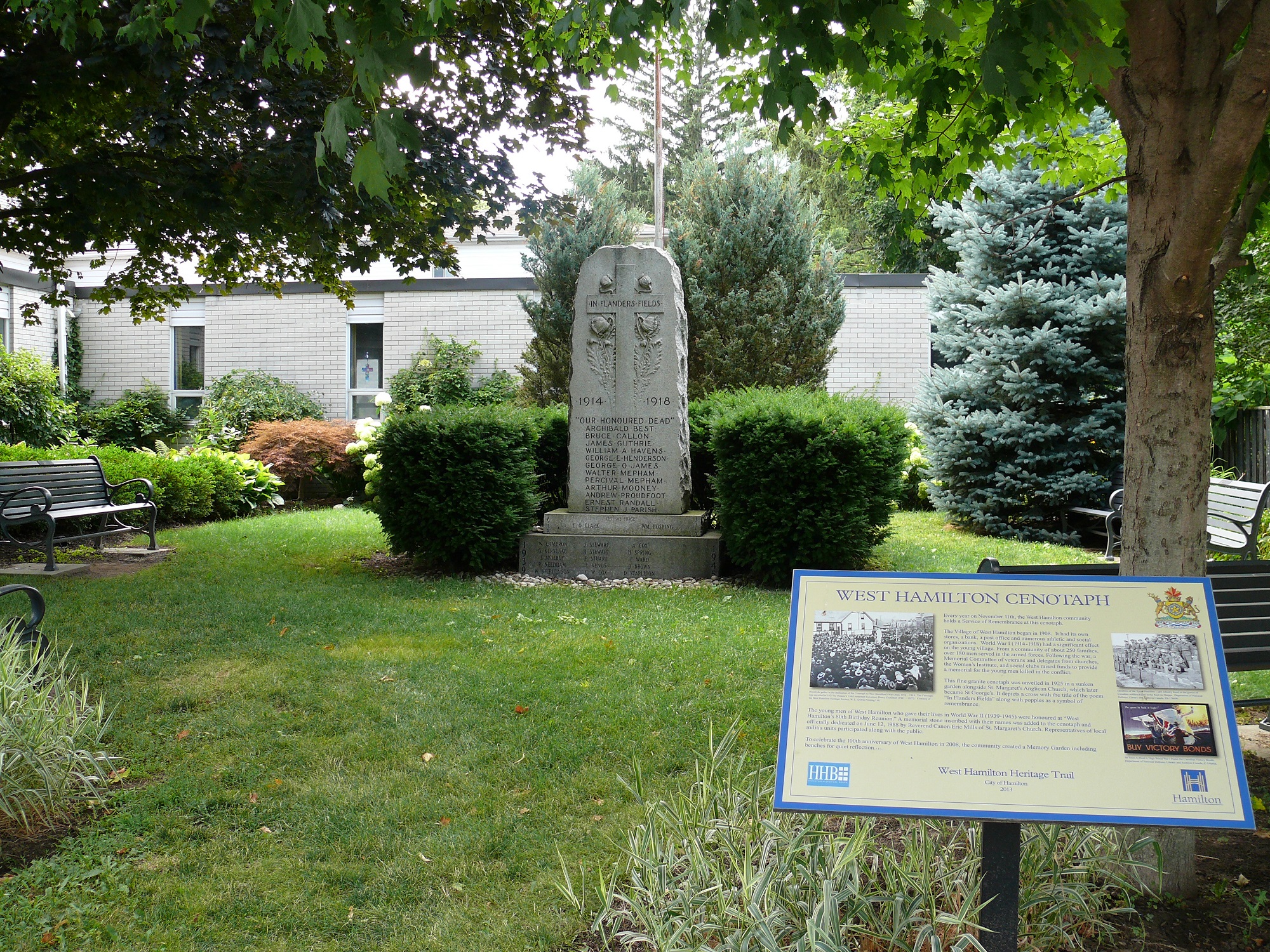 To celebrate the 100th anniversary of West Hamilton in 2008, the community created a Memorial Garden including benches for quiet reflection.