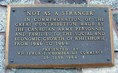 Ce mémorial est dédié au personnel de l’Armée canadienne et de l’Aviation royale du Canada. Les plaques ont été posées par la Chambre de commerce de Whitehorse.
