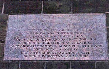 OPUS PER MULTOS ANNOS PRAETERMISSUM (QUID DUCI EGREGIO CONVENIENTIUS!) AUCTORITATE PROMOVENS, EXEMPLO STIMULANS MUNIFICENTIA FOVENS DIE NOVEMBRIS Xva A.D. MDCCCXXVII GEORGIO IV BRITANNIARUM REGE.
