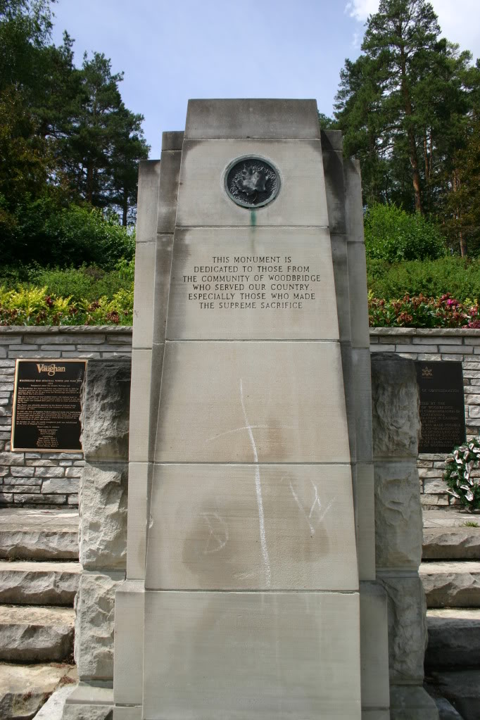 La Tour commémorative de Woodbridge a été construite en 1924 par des membres bénévoles de la communauté en l’honneur du sacrifice suprême consenti par les 26 hommes de la région de Woodbridge tués au cours de la Première Guerre mondiale. Le conseil de Woodbridge a demandé au major Gibson, du Queen’s Own Rifles, de concevoir une tour de guet. John Johnston, de Woodbridge, a fait don de la pierre de champ pour la construction de la tour, tandis que le gravier et le sable provenaient de la mine de Robert Huston. Fred Barret, un maçon en pierres de Humbervale, près de Weston (au sud de Woodbridge), a construit la tour. Elle a été inaugurée par le colonel Harry Cockshutt, lieutenant-gouverneur de l’Ontario, le 16 novembre 1924.