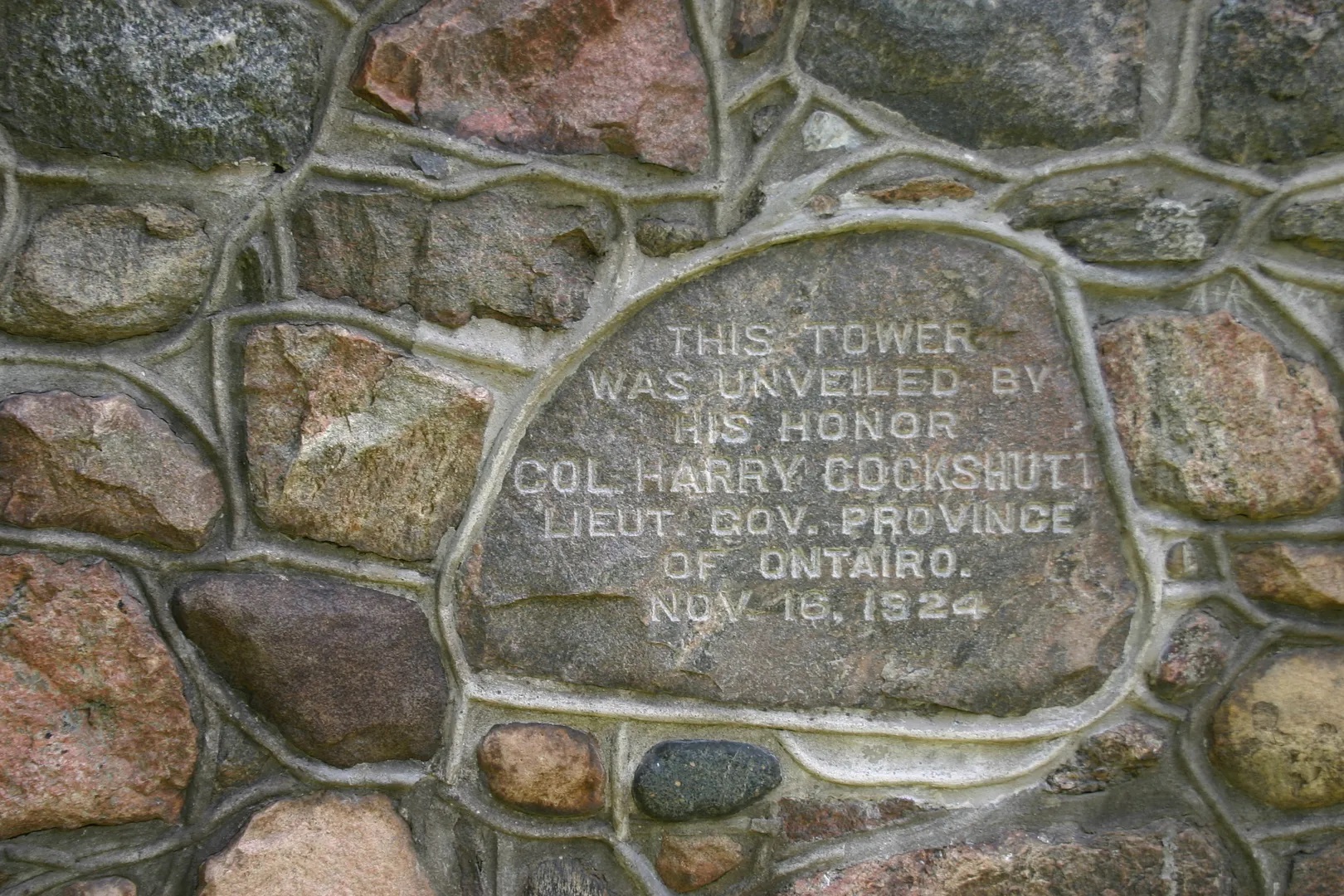 Le site est conçu en quatre niveaux étagés; le niveau le plus élevé est occupé par la tour. Au sommet de la tour se trouve un phare en forme de dôme, décoré d’une maçonnerie de pierre crénelée et de petites ouvertures de fenêtres entourant sa base. Le feu de balisage éclairait autrefois la région environnante la nuit et pouvait être vu depuis la route no 7. Chaque niveau est soutenu par un mur de soutènement en pierres coupées. Les pierres coupées trouvées au niveau le plus élevé ont été récupérées de ce qui était connu comme le vieux pont Humber, démoli lors de l’élargissement de la route no 7 en 1924. Le niveau de base est constitué d’un portail et d’un escalier en pierre, avec une stèle gravée et deux plaques ajoutées ultérieurement, l’une pour commémorer le centenaire du Canada en 1967, et l’autre érigée par les politiciens de la ville de Vaughan en 1996 pour avoir accepté de dépenser les fonds nécessaires à la modernisation et à l’aménagement paysager du parc.