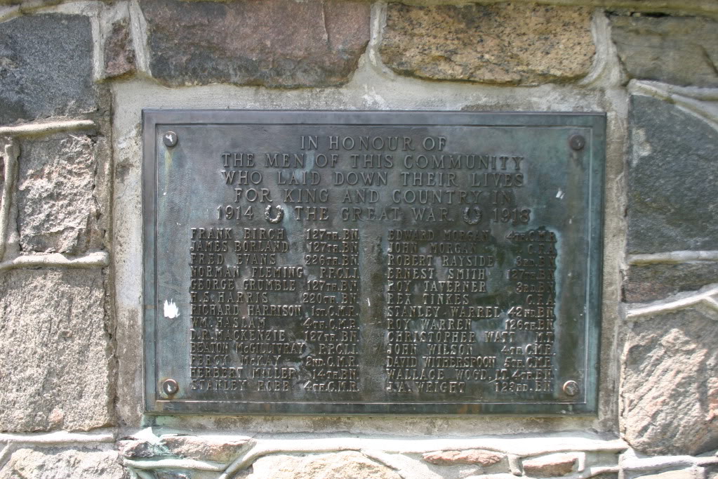 Le major Alexander A. MacKenzie un fils est né le 1er novembre 1885 à Donald et Lydia Ann MacKenzie, dans un secteur de Woodbridge que les gens de l’époque connaissaient sous le nom de Brownsville. Jeune homme, Alexander, s’est enrôlé dans la Garde du corps du gouverneur général. Au déclenchement de la guerre, en 1914, il a été transféré dans le 4e Canadian Rifles et il a été envoyé outre-mer en 1915. En moins de deux ans, il s’est hissé au rang de major grâce à sa bravoure et à son leadership pendant la bataille de la Somme, en 1916, et celle de la crête de Vimy, en 1917, au cours de laquelle il a été sérieusement blessé. La tour commémorative de Woodbridge et l’aréna Memorial de Woodbridge, dont la construction date de 1951, sont deux projets qui lui tenaient beaucoup à cœur. Son frère Donald Ross est mort sur un champ de bataille en Europe pendant la Première Guerre mondiale.