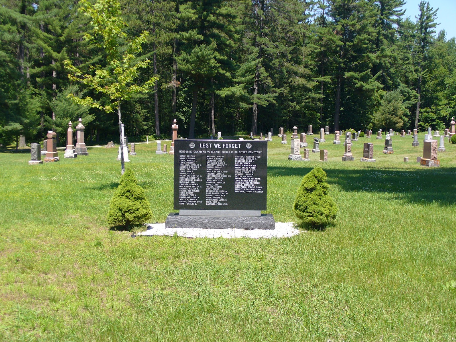 Mémoriaux, monuments et cimetières partout au Canada rendant hommage à ceux qui ont servi.