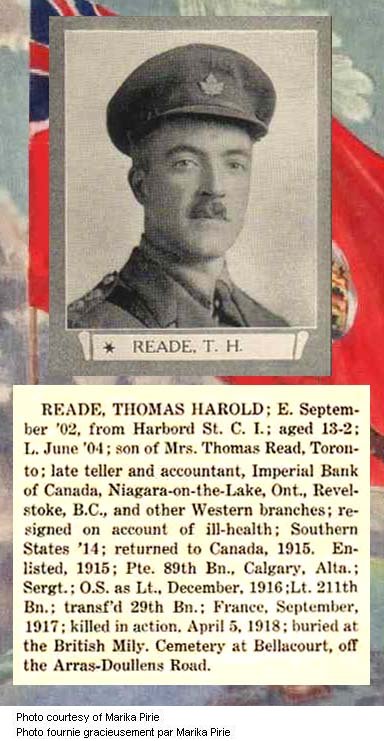 Fils de Thomas W. Reade, M.D., et Alice M. Reade, de Niagara Falls, Canada; époux de Frances Ma0y Reade, de 4, Wells Apls., 33, Wells St., Toronto.