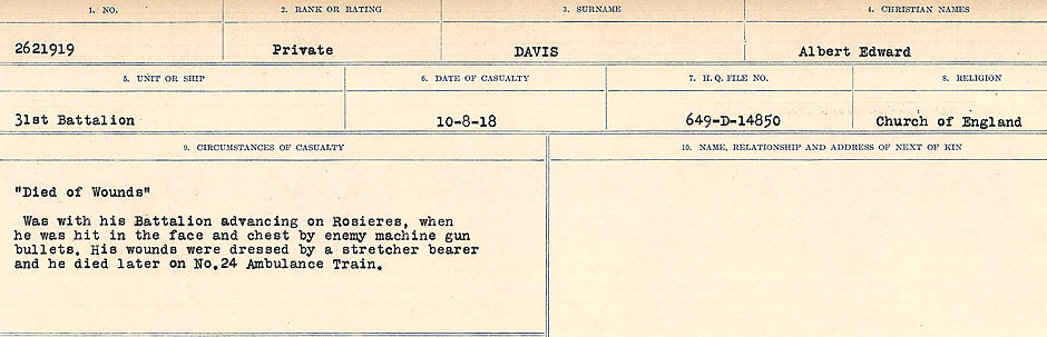Galerie numérique de Soldat Albert Edward Davis