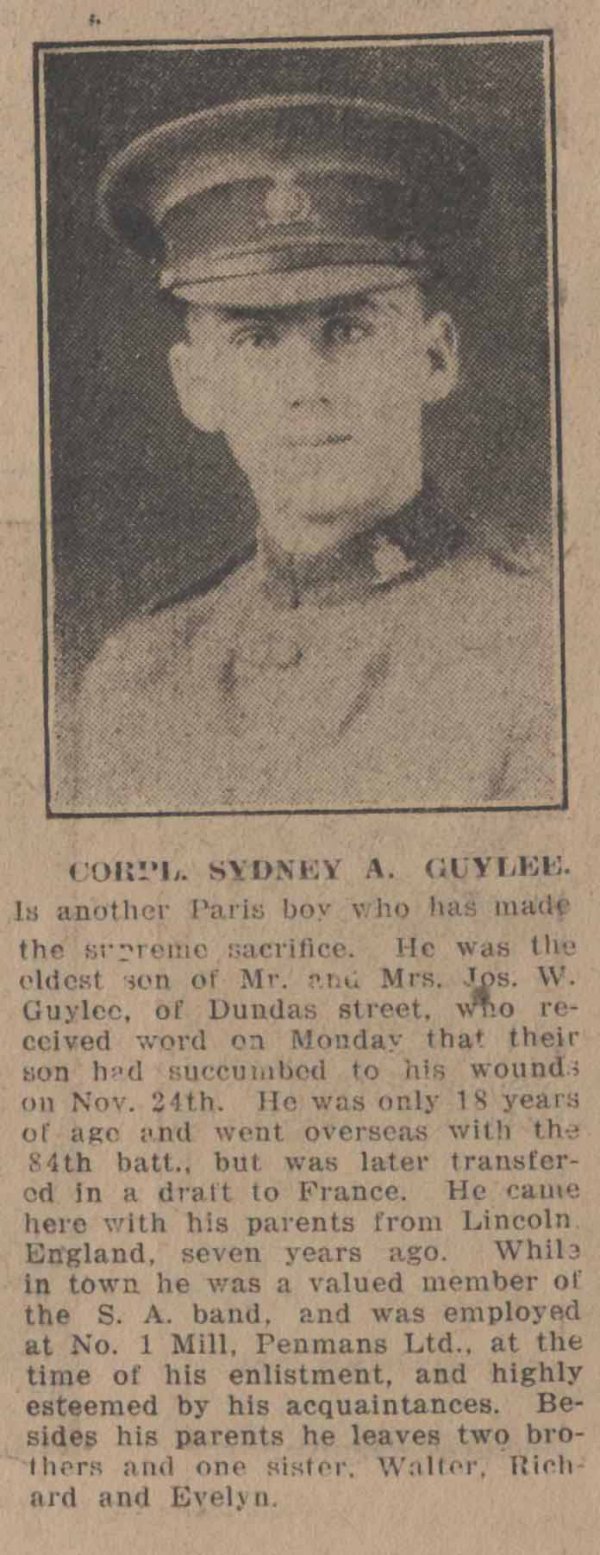 Galerie numérique de Soldat Sydney Arthur Guylee