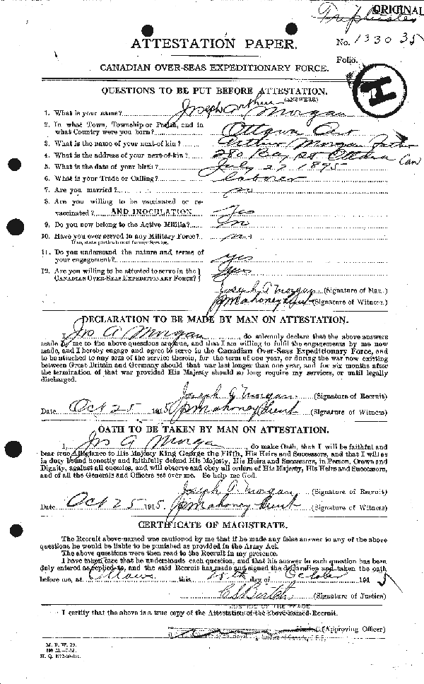 Galerie numérique de Soldat Joseph Arthur Morgan