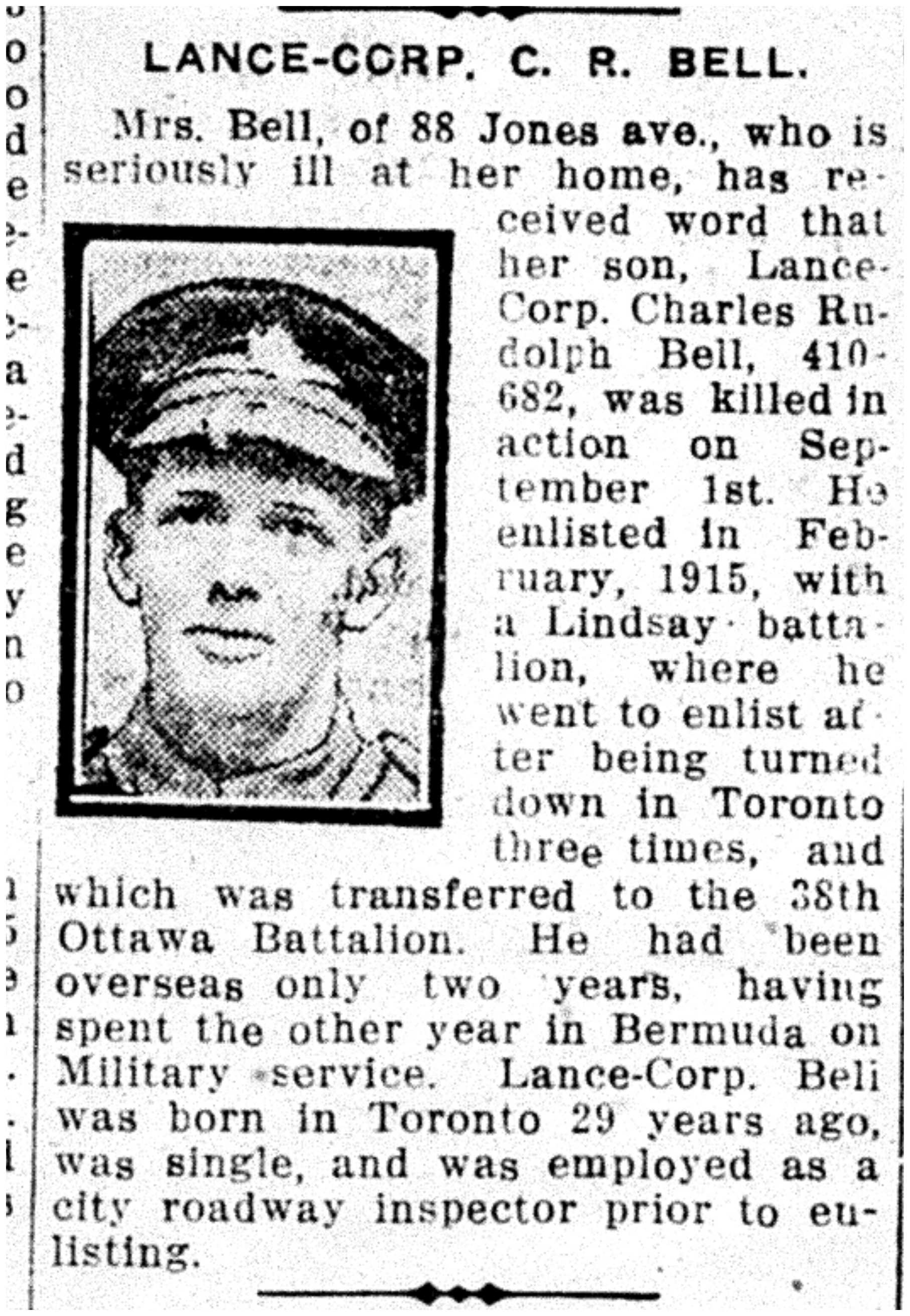 Galerie numérique de Caporal suppléant Charles Rudolph Bell