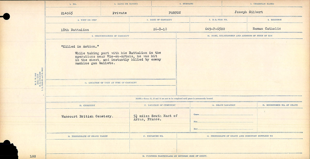 Galerie numérique de Soldat Joseph Gilbert Forton