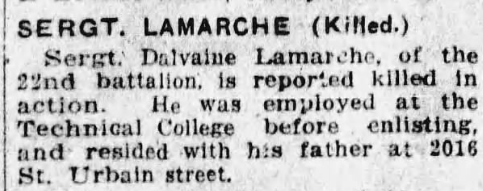 Baptisé Joseph-Albert-Dalvanie Lamarche. Fils de Benjamin Lamarche et Alphonsine Forget, de Montréal, Québec.