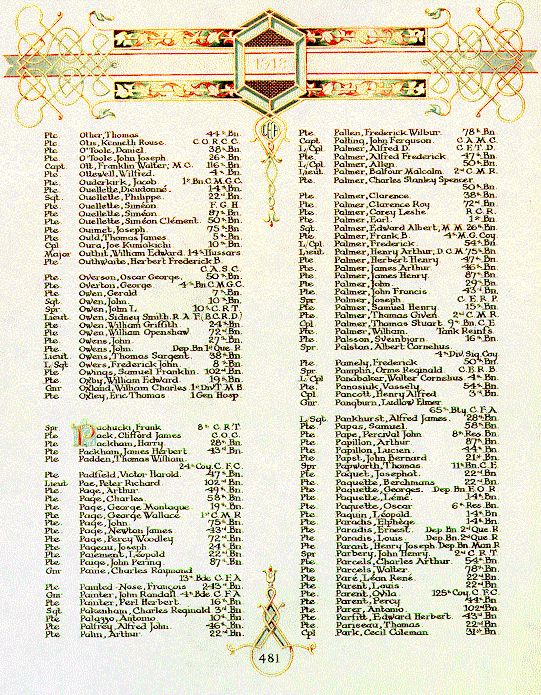 Page 481 du Livre du Souvenir de la Première Guerre mondiale.