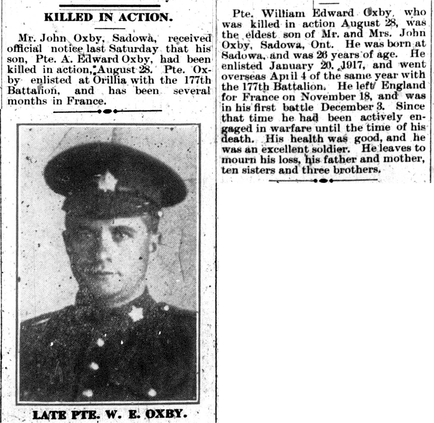 Fils de John et Delia Oxby de Dalton, Ontario.