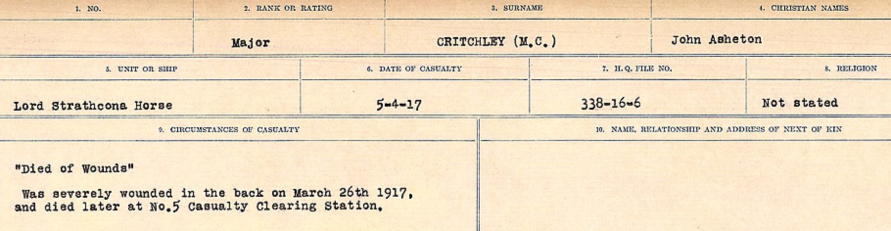 Galerie numérique de Major John Asheton Critchley
