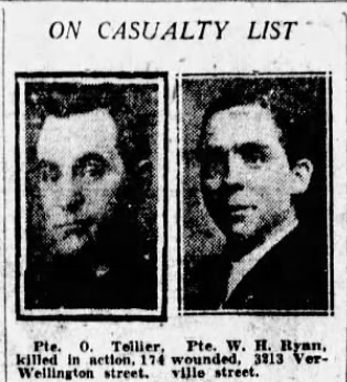 Fils d’Édouard Tellier et Albina Blais, de Montréal, Québec. Il avait déclaré être né le 18 avril 1889 lors de son enrôlement.