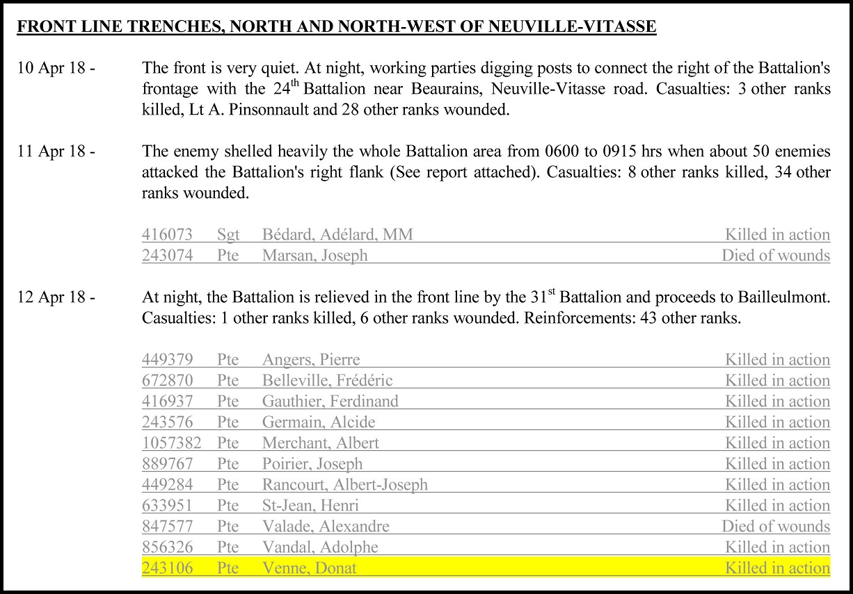 Page 516 du Livre du Souvenir de la Première Guerre mondiale.