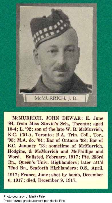 Fils de William Barclay McMurrich, de Toronto; époux de Evelyn McMurrich, de Vancouver, Colombie-Britannique.