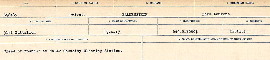 Fils de Gerardus et Johanna Balkenstein, de Terneuzen, Hollet; époux de Mary N. Balkenstein, de Vale, Alberta.