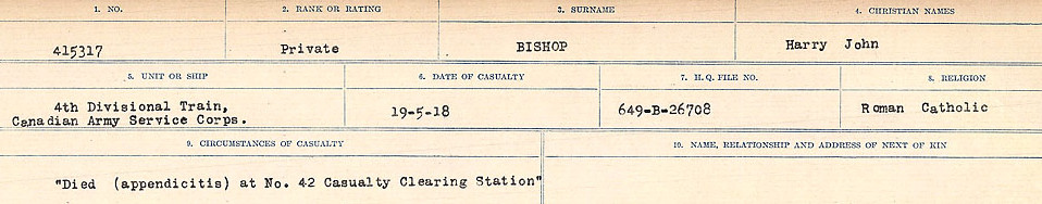 Fils de William et Mary Bishop, de 86, Charles St., Halifax, Nouvelle-Écosse.