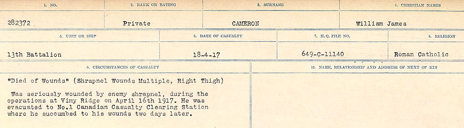 Galerie numérique de Soldat William James Cameron