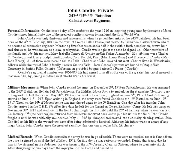 Unité/Régiment : Canadian Infantry (Saskatchewan Regiment)