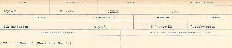 Fils de Alexander Condie. Il était conducteur de locomotive et célibataire.