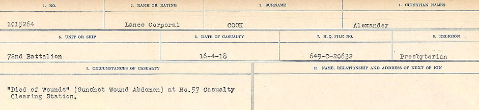 Fils de Alex R. et Jessie Cook, de Landerberry Echt, Aberdeenshire, Écosse.