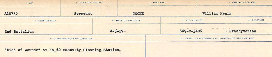 Fils de William S. et Mary J. Cooke, de 18, rue River, Smiths Falls, Ontario. Canada. Il était entraîneur de chevaux et célibataire.