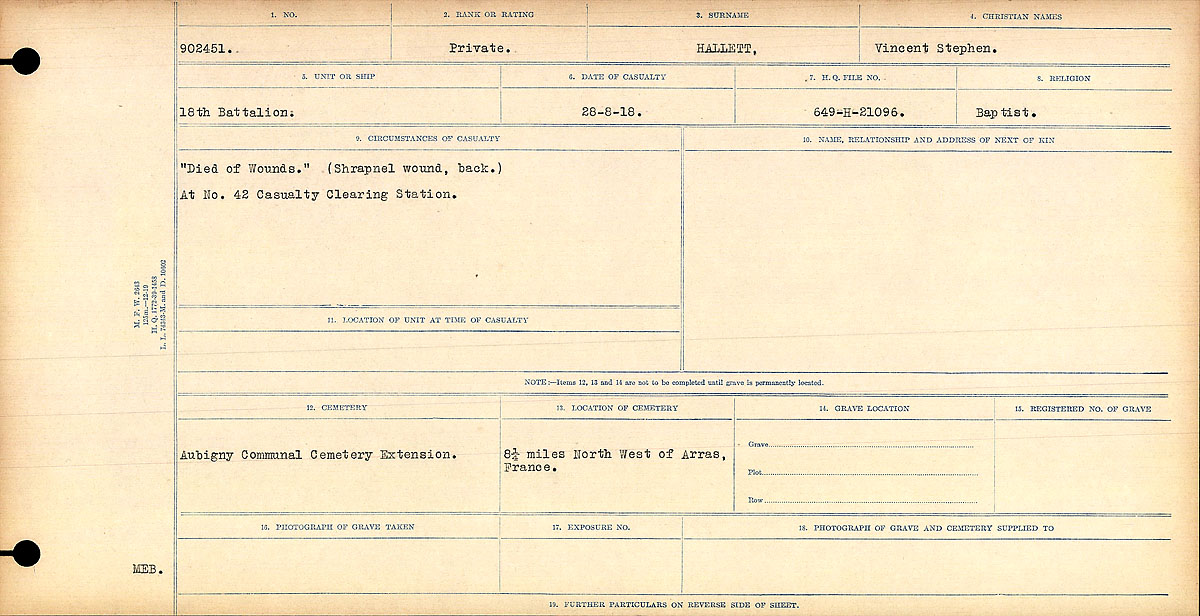 Galerie numérique de Soldat Vincent Stephen Hallett