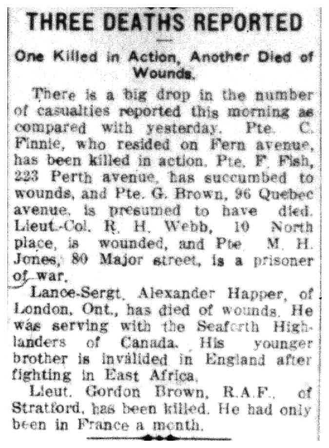 Fils de Robert et Isabella Happer, de Alvinston, Ontario.